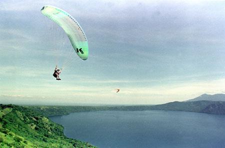 .... Para sailing over over Apoyo Lake, Nicaragua