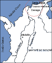 Die Tayrona erbauten sie etwa zwischen 500 und 700 n.Chr.. Woher sie kamen, das weiß man heute immer noch nicht sicher. Aber die Art und Weise wie sie Gold, Halbedelsteine, Keramik, usw. verarbeiteten, ähnelt so sehr Funden aus Costa Rica, dass sie vermutlich aus Mittelamerika her einwanderten. Auch die Kogi, direkte Nachkommen der Tayronas, die heutzutage in der Nähe der Ciudad Perdida leben, behaupten, dass ihre Urahnen vor 52 Generationen vom Land der Vulkane kamen. | |